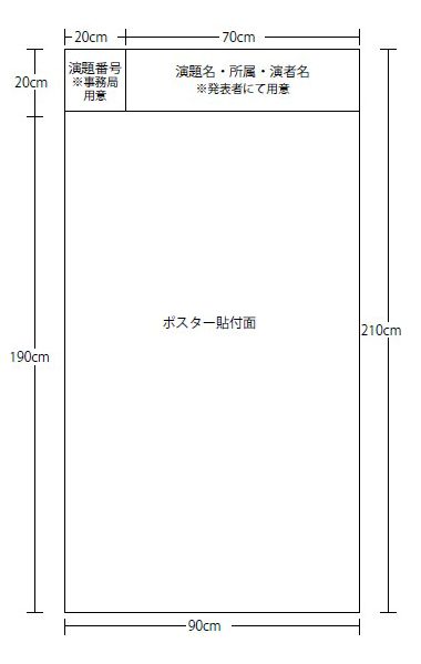 - 会場内に演題番号のついたパネルを用意いたします。パネルの大きさは、横90cm ×縦210cm です。